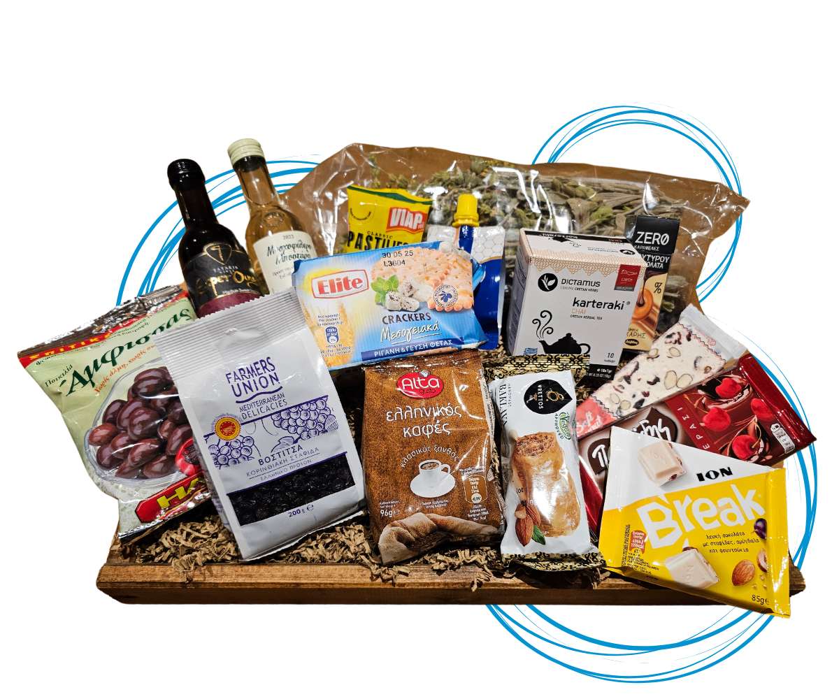 Please note that in the event any specific products or brands included in our baskets are unavailable, we reserve the right to replace them with another product of the same category and equal value. For example, if Ouzo 12 is not available, it will be replaced with the same quantity of another ouzo. Similarly, if the almond wafer is out of stock, it may be substituted with a fruit wafer.