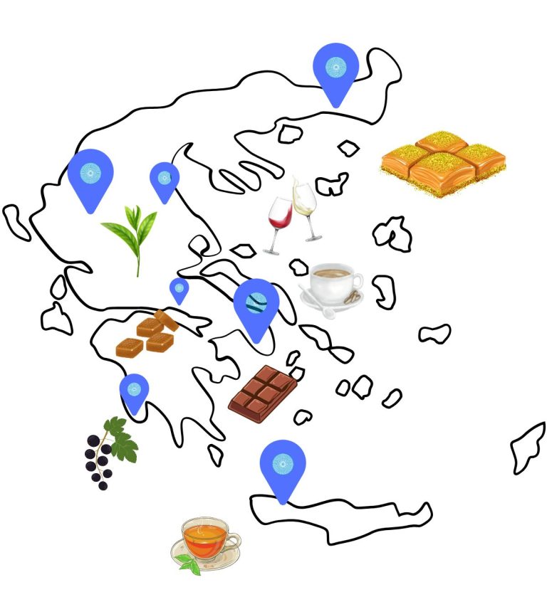 Begin your evening with an aromatic cup of tea or rich Greek coffee, accompanied by traditional baklava or exquisite chocolates. The Vostizza black currants add a healthy and tasty option, rich in nutrients. Continue with a glass of white or red wine for an authentic Greek experience. The butter caramels complete your evening with a sweet touch