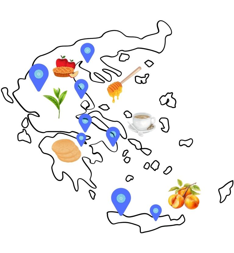 Start your day with rich Greek coffee or aromatic mountain tea, accompanied by crunchy rusks. Add a sweet touch with “Attiki” honey or fresh jams. The loukoumi and halva provide the perfect balance of sweetness, while the dried apricots and sesame-honey pasteli are healthy options packed with energy.